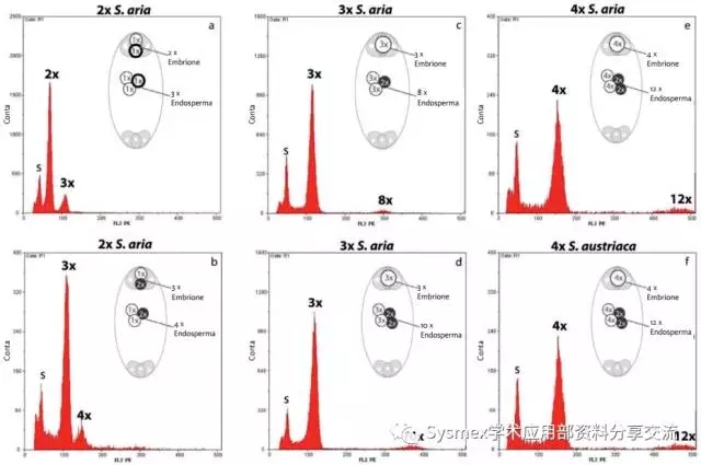 孤雌生殖是一種不經(jīng)過(guò)受精但產(chǎn)生種子生殖方式。其繁殖后代與母體是相同的。流式圖中的峰是由于種子的胚胎和胚乳細(xì)胞由無(wú)特定的孤雌生殖以及孤雌生殖的方式產(chǎn)生。(圖5)
