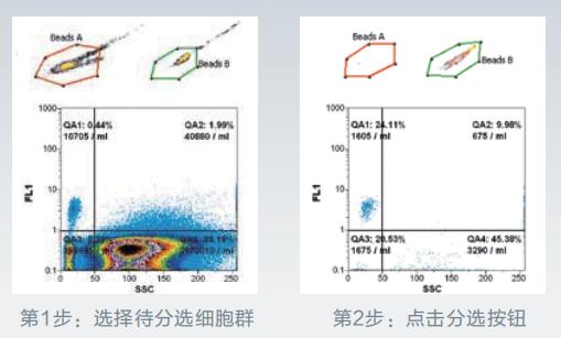 ●操作簡(jiǎn)便,兩步操作,選擇待分選細(xì)胞群,點(diǎn)擊分選按鈕;