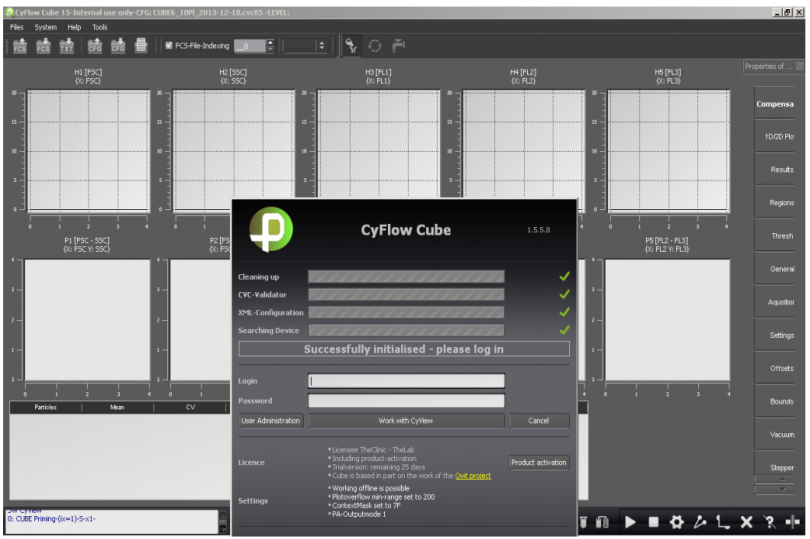 Windows? CyView?軟件可以完成儀器控制、數(shù)據(jù)分析的各種功能,這些功能包括數(shù)據(jù)的實(shí)時(shí)采集、實(shí)時(shí)或離線數(shù)據(jù)分析、實(shí)時(shí)或離線的熒光補(bǔ)償?shù)裙δ?。該軟件可自由組合不同的參數(shù)設(shè)置界面和數(shù)據(jù)處理界面,便于不同應(yīng)用程序之間完成切換。